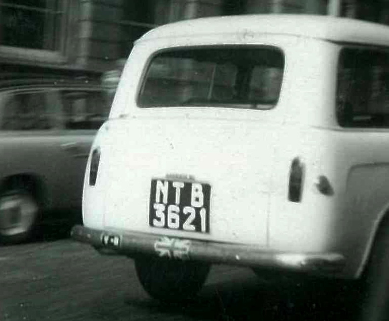 This anonymous shot shows the Hillman Husky bearing a home-made VN oval on the bumper. The bumper was missing on the later shot, by Vic Brumby in Notting Hill Gate a little later, below.