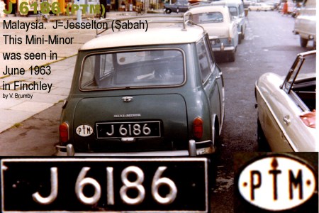 1963 sighting in London of Jesselton Mini. Using the new Perseketuan Tanah Melayu PTM oval, formerly FM.