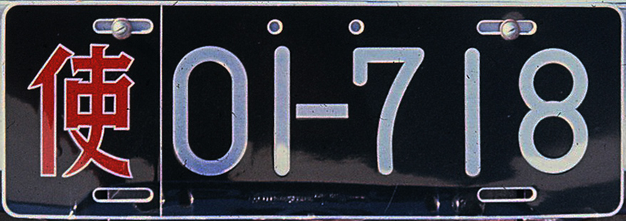 Further to the March 2013 Post ‘Fancy a Chinese?‘ and the subsequent identification of the Chinese character on the shield, Alex Kavka sends the Blog the Chinese ideogram for ‘ambassador’, on his Taiwan diplomatic photo 359. It is the same as that of the current PRC diplomatic corps (not necessarily ambassador) ideogram 01-718 and another 1972-4 Taiwanese dip. 1 50 also shows the same character. (from ‘RG’.)
