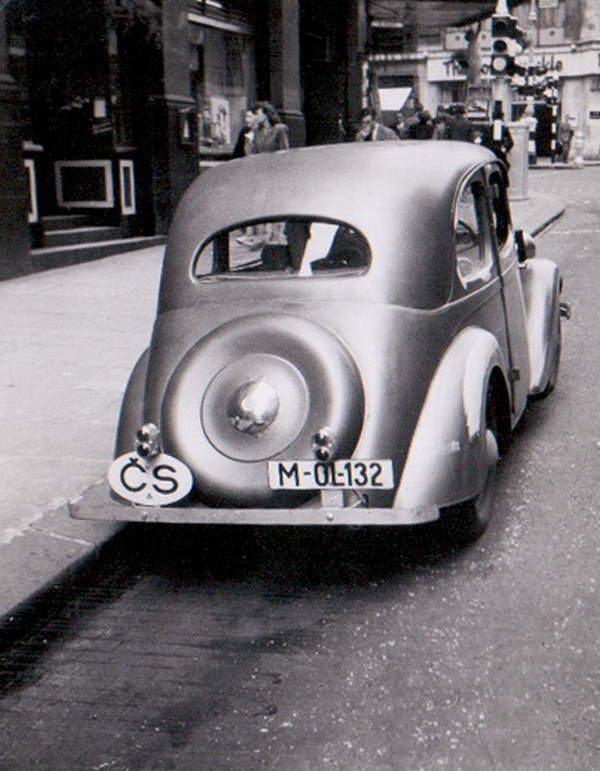 We start with an American Jeep photographed in Prague between 1945 and ’47, registered P-1323, which is painted on to the tailgate.