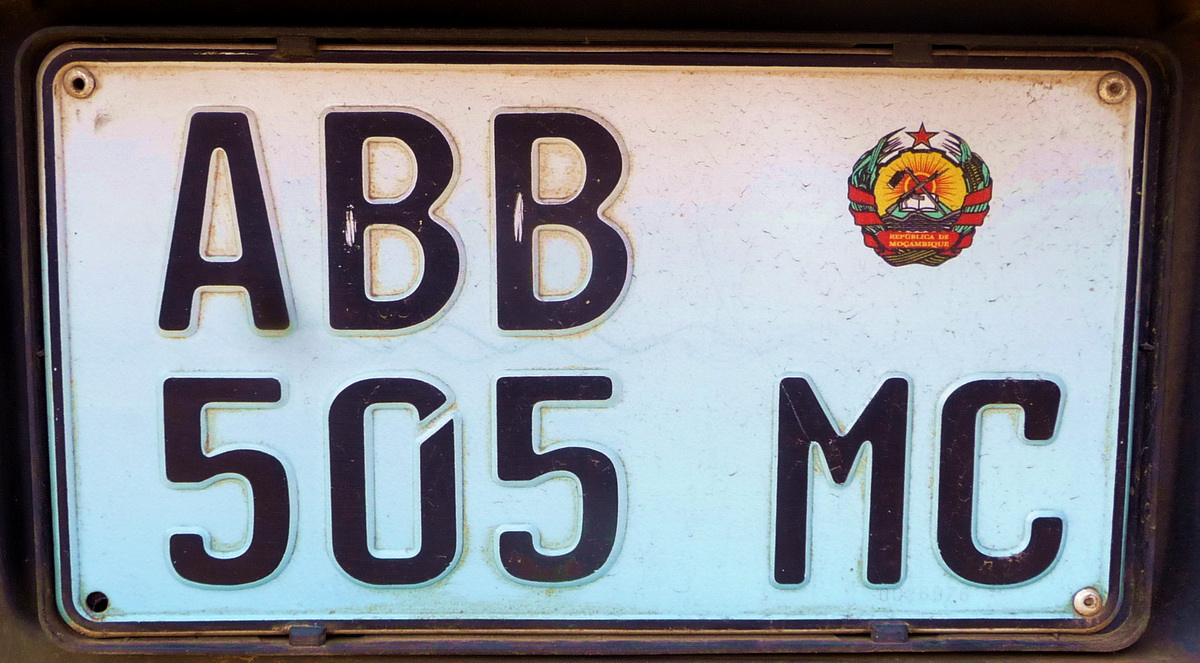 A recent run round southern, central and northern Africa unearthed a few unexpected plate sightings, which Bloggers may like to share. A car-park in Nelspruit, Mpumalanga (formerly Northern Transvaal) presented the remarkable photo opportunity to compare the latest Mozambique plate with the current MP local plate. The background colours of the MOC Maputo Province help to identify them from the mainly black on white South African MP series – but remembering that the two places share a national border, it does seem odd that such similar formats were adopted.