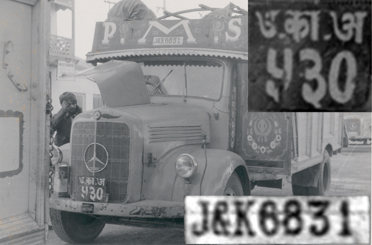 J&K 6831 — The dual-plated lorry on which the writer hitch-hiked from Patna to Kathmandu in 1965, carried Nepali and Jammu & Kashmir commercial plates.