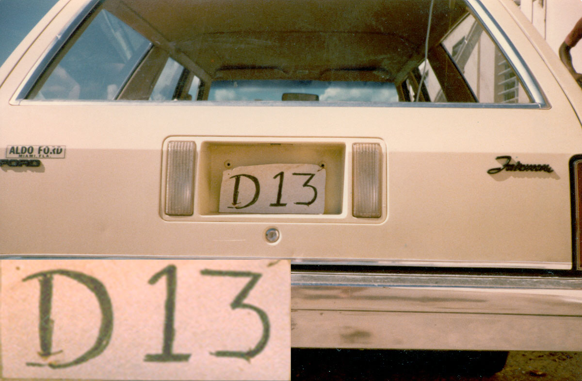 In December  1981, when the writer visited, and long before the technicolour plate revolution of 1997, Anguilla was using painted plates, often on plywood backing, there being so little steel or aluminium material from which to make up plates.    Often they were painted  direct on the old vehicles.    A plate I acquired there, A 402 (no photo), was painted on the obverse of a Gibraltar pressed-alloy from a VW which had been imported therefrom.